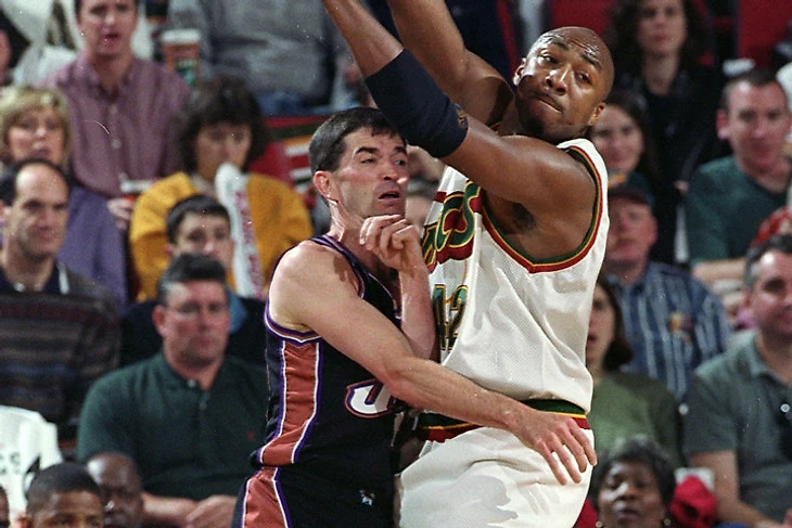 Я выберу Рона Харпера. Он стартовал как реактивный атакующий защитник «Кливленда», мини-Джордан, набиравший 23 очка за игру в свой дебютный сезон и поражавший своим атлетизмом. После разрыва «крестов» он воплотился в лидера «Клипперс», где время от времени собирал трипл-даблы и смог ДВАЖДЫ ВЫВЕСТИ ИХ В ПЛЕЙ-ОФФ (простите, но такие вещи нужно писать капсом. Это же «Клипперс»!). Судьба отплатила за невызовы на Матч всех звезд пятью перстнями, которые Рон под занавес карьеры выиграл в «Буллз» и «Лейкерс», окончательно превратившись в рассудительного, pass-first разыгрывающего.