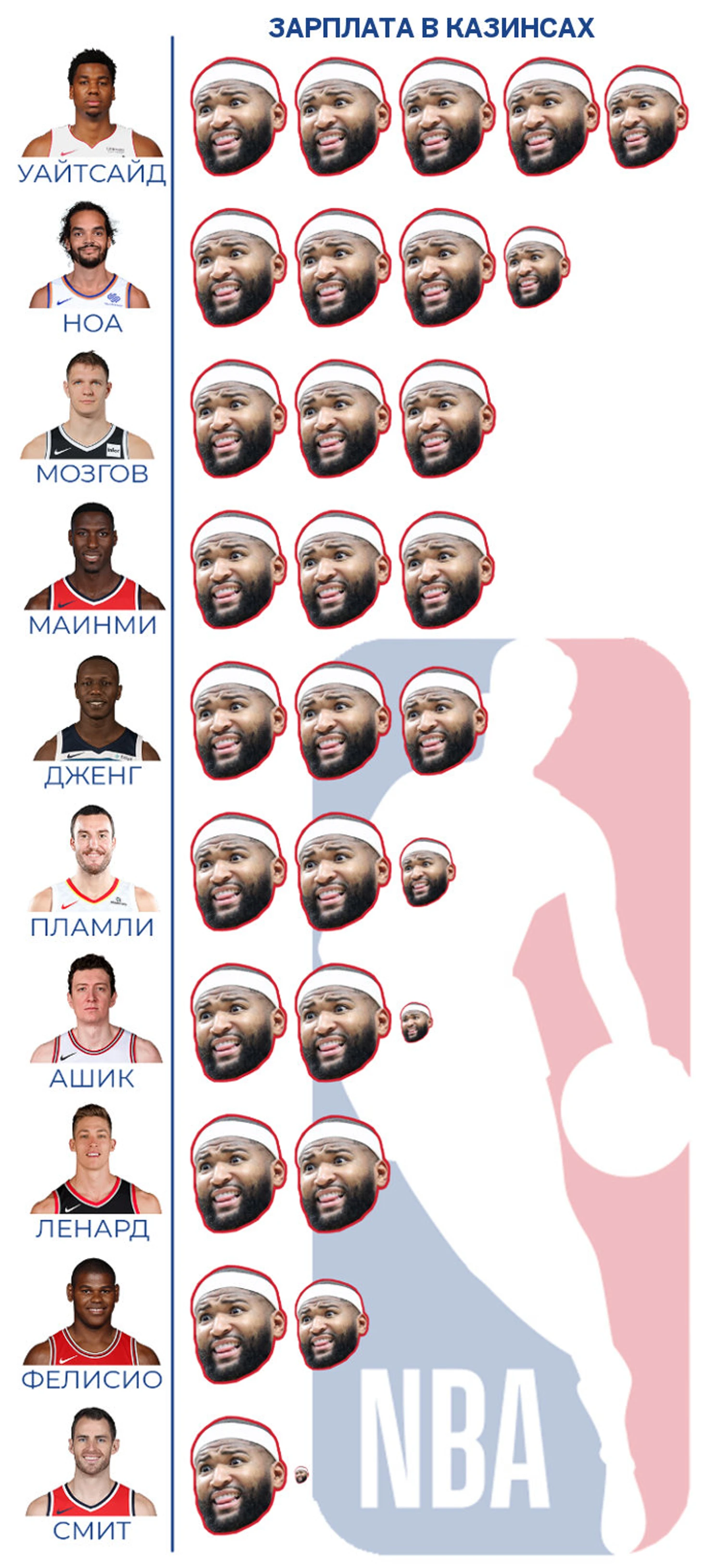 Вот как выглядит контракт Казинса на фоне некоторых других центровых, преимущественно запасных: