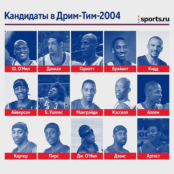 Идеальная сборная-2004 на бумаге выглядит угрожающей – особенно первая пятерка, в которую попали ровно те же пять человек, что и были выбраны в первую символическую сборную сезона НБА-2003/04. Но глобализация НБА уже началась – в том году места на МВЗ достались иностранцам Новицки, Стояковичу, Кириленко, Яо и Маглойру, годом ранее там играли Нэш и Илгаускас. А через год дебютирует и Джинобили, лучший игрок Олимпиады-2004.