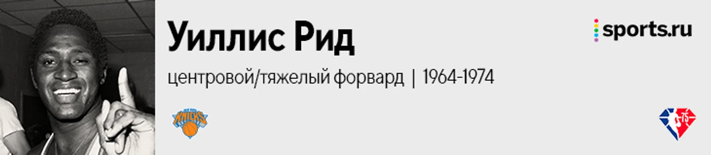 В 1970-м году Уиллис Рид стал первым, кто собрал в один сезон все три приза MVP – регулярного сезона, финала НБА, Матча всех звезд (позднее это повторят Джордан дважды и О’Нил). Рид значительно уступал Уилту Чемберлену в росте, но ни разу не уступил ему в финале: в 1970 даже хромающий напугал «Лейкерс», в 1973 связал Уилта в защите и завоевал второй перстень и MVP финала. А финал-72 Уиллис пропускал из-за травмы – к сожалению, это такая же неотъемлемая часть его карьеры, как чемпионские кубки. Рид завершил в 31, на Матче всех звезд последний раз играл в 28, но все равно остается самым культовым баскетболистом для фанатов в Нью-Йорке.