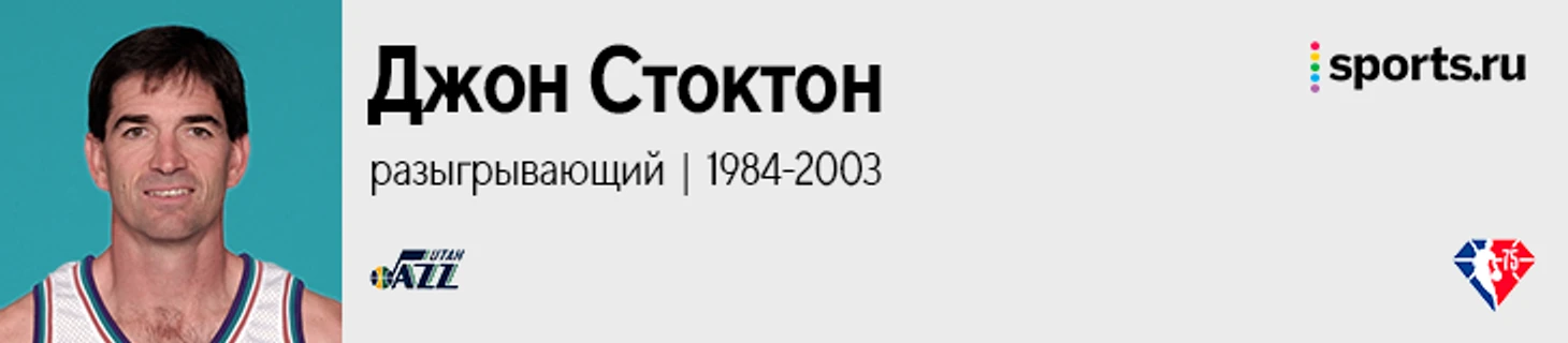 Лидер по передачам за карьеру (15806) с отрывом в 3,5 тысячи от второго места и в полтора раза – от третьего. Откуда такой отрыв? Во-первых, долговечность: в 17 из 19 сезонов не пропускал вообще ни матча. Во-вторых, феноменальный контроль над игрой: единственный разыгрывающий, чьи команды набирали больше половины очков после его пасов; 9 раз подряд был лидером сезона по ассистам. Ну и, конечно же, наличие такого адресата для передач, как Карл Мэлоун, не повредило. Кстати, по перехватам (3265) он тоже лучший в истории.