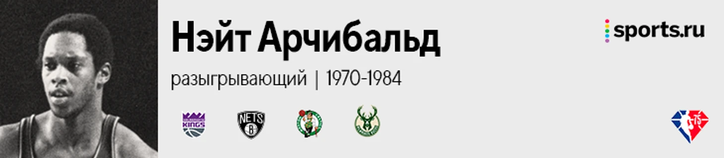 Легенда стритбольных площадок Нью-Йорка, Нэйт «Кроха» Арчибальд (185 см по протоколам, в реальности ближе к 180) смог успешно перенести свой скоростной уличный стиль в НБА. В сезоне-1972/73 году стал лидером одновременно по очкам и передачам, чего больше никто не добивался в одном сезоне. На пике карьеры получил тяжелую травму, оставшись вне игры на полтора года, трижды был обменян за два неполных года и оказался в «Бостоне», где уже не был тем взрывным разыгрывающим, как в юности, но все равно взял перстень как главный помощник Лэрри Берда в его первой чемпионской команде-1981.