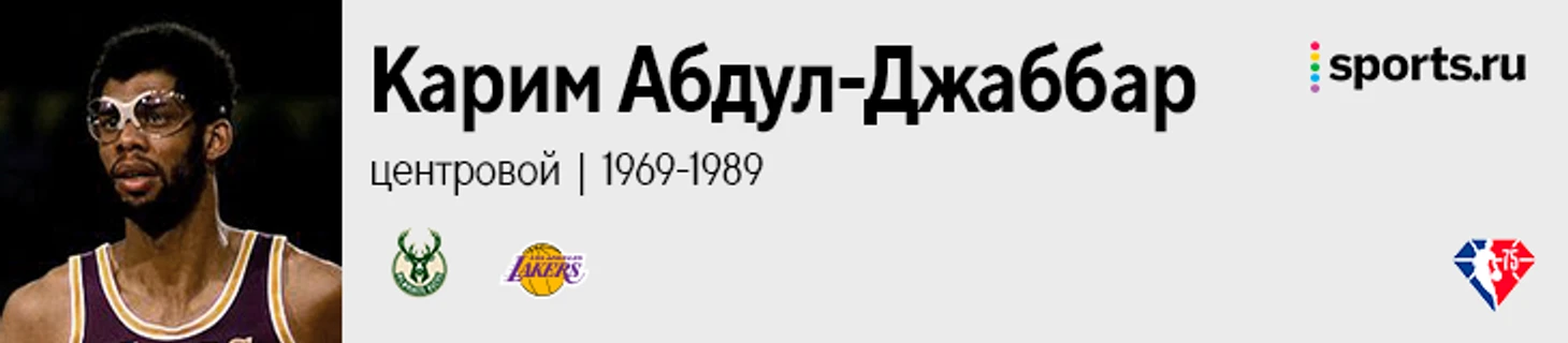 Не самый высокий игрок в истории, но самый высокий – в этом списке, и когда эти 218 см на длиннющей руке запускали скайхуки-полукрюки через соперников, заглушить такое орудие никто не мог. Рекордсмен НБА по числу наград MVP (6 штук с 1971 по 1980) и главный игрок 1970-х – хотя взял тогда лишь один чемпионский титул с «Бакс». Но еще 5 перстней он выиграл в 80-е, уже как капитан «Лейкерс». Доиграл на высочайшем уровне до 42, до сих пор самый результативный игрок в истории НБА (38387 очков), а также самый побеждающий (1074 победы).