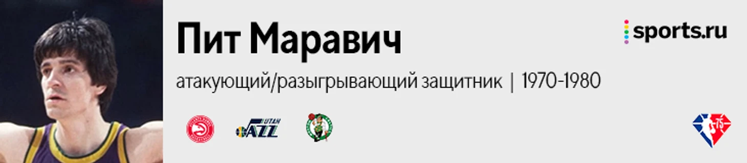 Маравич стал предвестником как Берда – благодаря дальним броскам, хотя трехочковую линию еще не ввели – так и Мэджика как человек, предпочитающий красивый пас простому. Он провел в НБА совсем мало времени – 10 сезонов, 658 игр, всего 4 невзрачных выхода в плей-офф. Современники ценили его меньше, чем последующие поколения: финты и броски, конечно, здорово, но победы тогда ценились намного выше, так что вечно травмированный волшебник вызывался на Матч звезд всего 2 раза в «Атланте» и еще 3 – в «Новом Орлеане». Закончил в 32, был включен в Зал славы баскетбола в 40, а через полгода скончался.