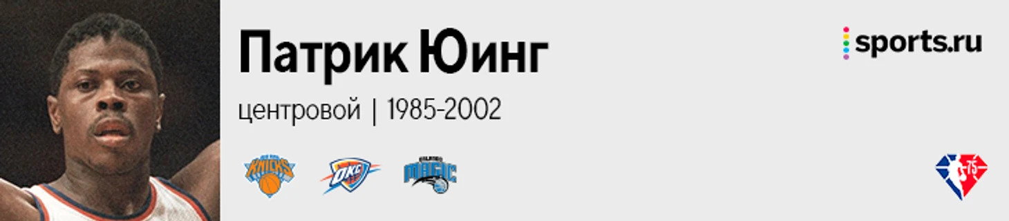 Величайший центровой в истории без чемпионского перстня, хотя выигрывал титулы и в колледже, и за сборную. Дважды его «Никс» играли в финалах (1994, 1999), но уступили командам главных оппонентов Юинга – «Хьюстону» Оладжувона и «Сан-Антонио» Робинсона, причем во втором финале уже 36-летний Патрик не играл из-за травмы. Из-за такой глубины на позиции центрового в 90-е недополучил попаданий в сборные по защите и в первые пятерки сезона, но больше всего Юингу не хватало полноценной звезды среди одноклубников. С огромным отрывом лидер «Нью-Йорка» по очкам, подборам, блокам, перехватам, играм, минутам, броскам, штрафным и так далее.