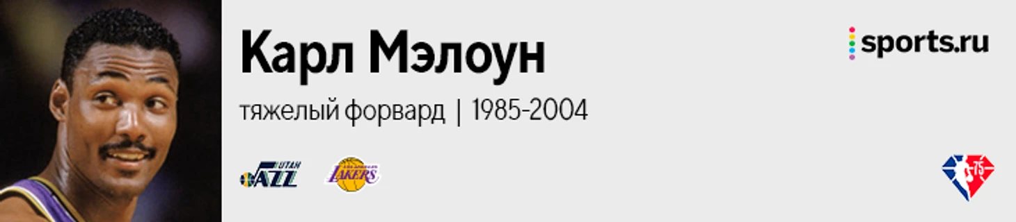 Двукратный МVP, рекордсмен по числу матчей подряд в стартовой пятерке (1442). Всего 5 игр в роли запасного, все в дебютном сезоне, всего 9 пропущенных из-за травмы матчей за «Юту Джаз» (еще 3 – из-за дисквалификации) и 1412 игр в связке с Джоном Стоктоном – так Карл Мэлоун стал претендентом на звание лучшего игрока в истории на своей позиции. Но и претендентом на звания лучшего игрока без перстня и главного неудачника НБА. Два финала в 1997 и 1998 годах выиграли «Чикаго Буллз». Карл до 38 лет оставался в элите НБА, на последний сезон перешел ради перстня в «Лейкерс» к Шаку, Кобе, Пэйтону. Но внезапно травмировался и в третий раз проиграл финал – характерный конец карьеры для Карла.