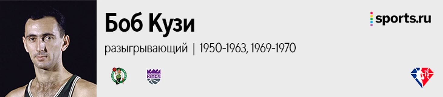Первая медийная звезда баскетбола – 8 раз подряд Боб Кузи лидировал в лиге по передачам, многие из которых поражали Америку 1950-х: из-за спины, между ног сопернику, между ног самому себе. Первые шесть лет в карьере скучал без хорошего центрового, но с приходом Билла Расселла образовал лучшую связку «маленький-большой» в баскетболе. Шестикратный чемпион, тринадцатикратный участник Матча звезд, MVP-1957.