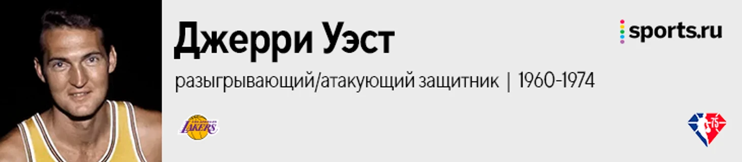 Тот самый человек, с которого списали силуэт на логотипе НБА, а значит, и форму статуэтки MVP. Сам остался без приза Самому ценному, хотя по карьере заслуживал его, как никто другой (четырежды второй в голосовании). В эру, когда еще не было разделения на все 5 позиций, был просто главным защитником клуба и лиги – и разыгрывающим, и атакующим, и даже защитником в смысле оборонительных действий. Не считая здоровья, игрок без слабых мест. За выдающуюся игру в финале-1969 был назван первым в истории MVP финальной серии, хотя проиграл ее «Бостону» – уже в шестой раз (единственный в истории MVP проигранного финала). Впереди – 3 финала против «Никс», в одном из которых Уэст наконец-то победил. С учетом дальнейшей карьеры в роли тренера и генменеджера команды (собрал и Шоутайм, и Шакобе) – главный человек в истории «Лос-Анджелес Лейкерс».
