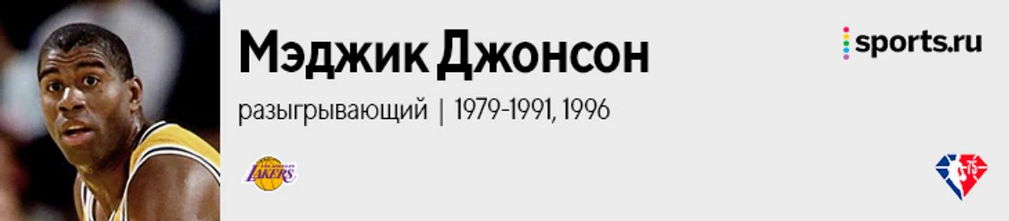 Эрвин Джонсон неслучайно заслужил прозвище – только магией можно было объяснить его игру. Парадокс – лучшим разыгрывающим в истории стал парень, который по антропометрии (206 см) должен быть форвардом или даже центровым. Мэджик играл так легко и волшебно, словно победы его не волновали – и при этом все время побеждал, от MVP финальной серии в самый первый сезон до девятого финала в карьере (5 победных) в 1991-м – против следующего игрока в списке. В том году и прервалась карьера Джонсона, когда у него обнаружили ВИЧ. Но даже за неполную карьеру в 12 сезонов Джонсон превратил баскетбол из игры, где бегают, прыгают и бросают, в игру, где творят.