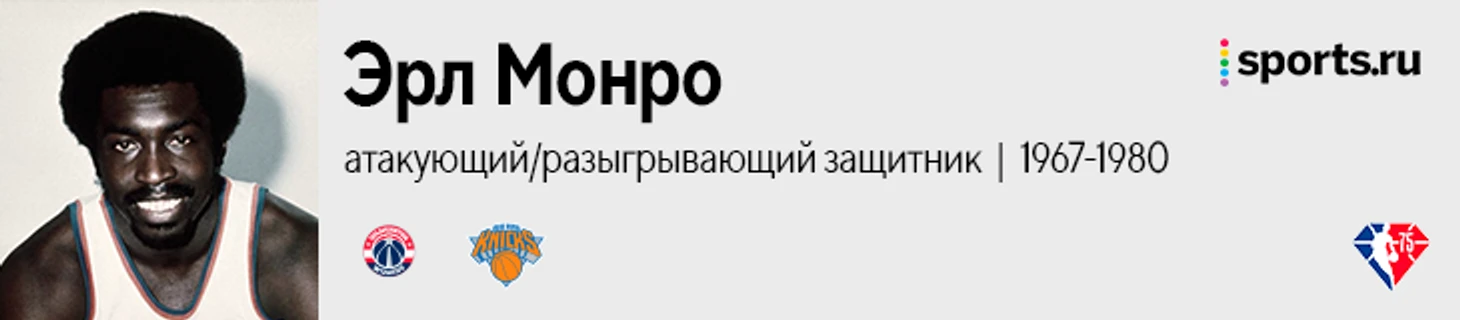 Еще одна культовая фигура 1970-х, «Черный Иисус», «Эрл-жемчужина», первый адепт уличного стиля баскетбола в НБА. Ярко стартовал в «Балтиморе» (Новичок года, 2 Матча звезд, 1 сборная сезона, финал НБА), но потребовал от небогатого клуба больше денег или обмен на крупный рынок и так попал в «Никс». Там поначалу не впечатлил: в его совместимости с Фрэйзером сомневались, первый сезон и финал-72 провалил, но к чемпионству-73 уже стал важной (и все же пятой по значимости) частью «Нью-Йорка». Лучшие сезоны (1974-1977, два МВЗ) провел, когда клуб проигрывал чаще, чем выигрывал. Скорее всего, без ассоциации с популярными «Никс» не попал бы в топ-50 и топ-75.