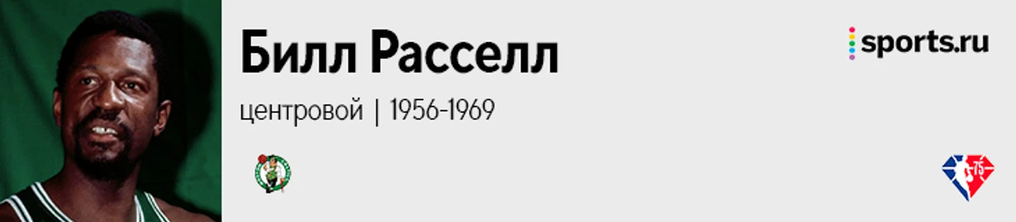 Билл Расселл много в чем первый: первый темнокожий MVP, первый многократный темнокожий MVP (5 статуэток, больше только у Карима), первая темнокожая звезда-чемпион, первый темнокожий тренер НБА, первый темнокожий тренер-чемпион... И независимо от цвета кожи: первый по числу чемпионских перстней. За 13 лет карьеры Билл завоевал 11 кубков, а заодно изменил игру. Не было в истории НБА защищающегося игрока, которого боялись больше, но Расселл с его бешеным атлетизмом повлиял и на баскетбольное нападение – он мгновенно конвертировал свои подборы и блоки в быстрые отрывы команды. Расселловские «Селтикс» доказали, что баскетбол может быть быстрым, привлекательным, но при этом приносить победы. И если где-то выдвигают альтернативный Джордану вариант «величайшего в истории», чаще всего это именно Билл.