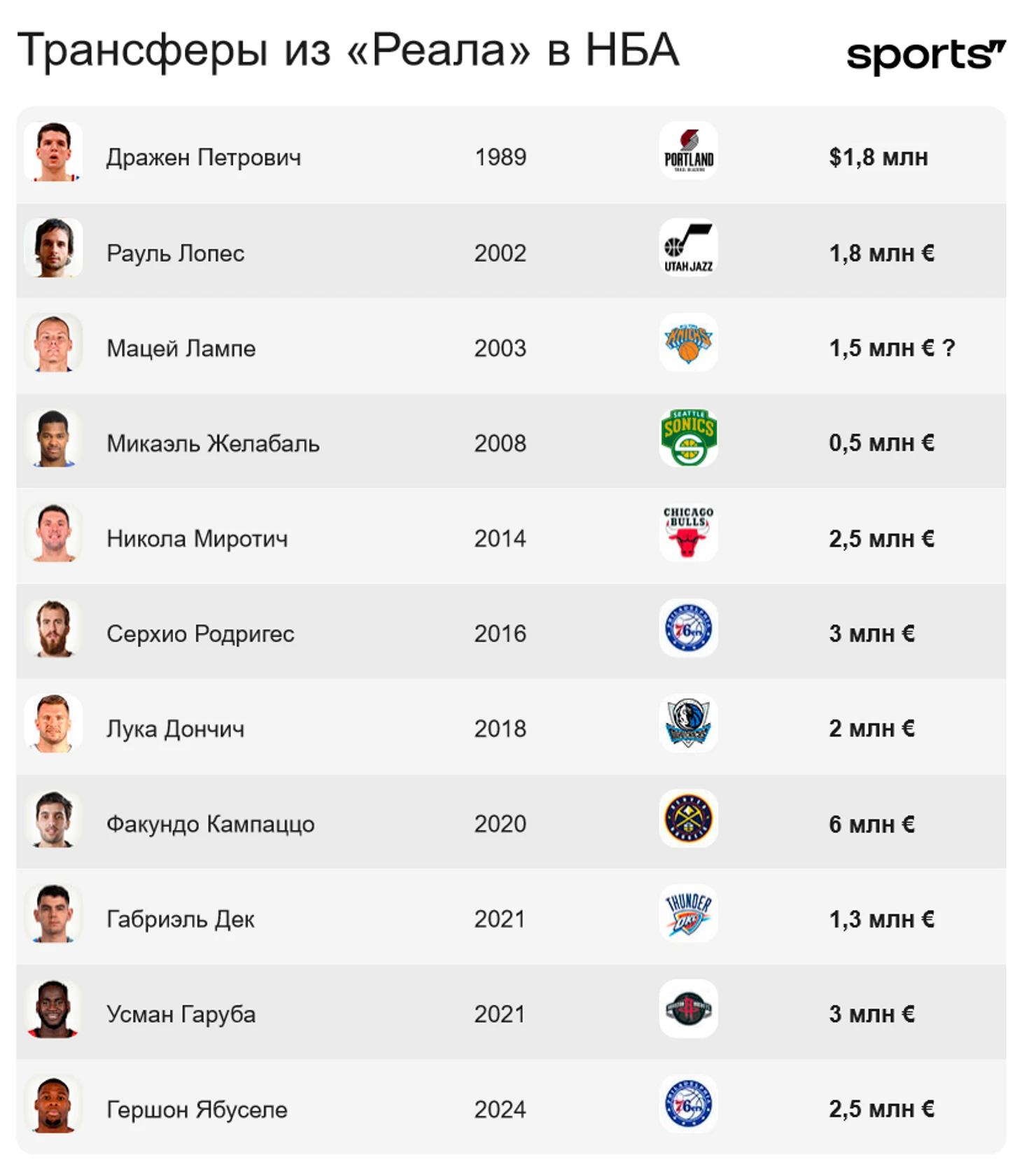 Вы уже наверняка видели новость о том, что за последние 10 лет «Реал Мадрид» получил более 20 млн за переходы своих игроков в НБА, и Ябуселе лишь продолжает эту выгодную для испанцев практику. Вообще она началась совсем не в последние 10 лет.