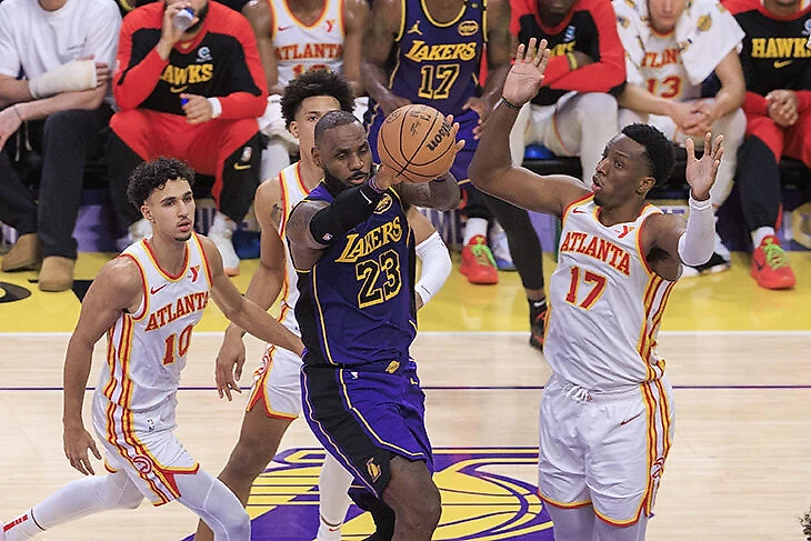 Непродвинутая статистика говорит, что с ним сегодняшние «Лейкерс» (24 победы, 18 поражений, 5-е место на Западе, в пяти победах от топ-4 и в двух поражениях от зоны плей-ин) играют хуже – отрицательный плюс-минус (-120), с ним на паркете ЛАЛ набирают на 9,4 очка за 100 владений меньше, чем когда он на скамейке (у Дэвиса, к примеру, +4,1). У Джеймса хорошая бросковая эффективность, но на линию штрафных он выходит реже, чем Остин Ривз, а соотношение потерь к перехватам и блокам – с запасом худшее в карьере.