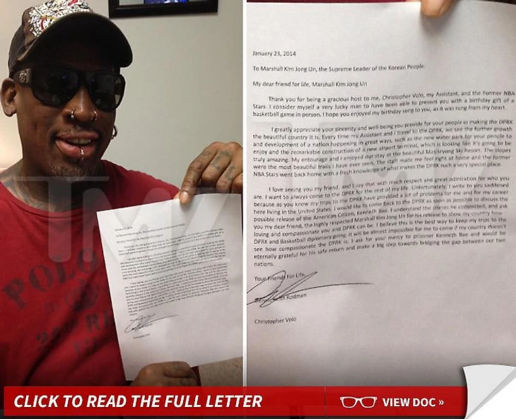На непродолжительный период времени могло показаться что Деннис и впрямь наладил тесные дружеские отношения с Ким Чен Ыном, которого он также называл «другом на все времена». Во многом этому способствовала просьба Родмана, которую тот адресовал главе Северной Кореи 7 мая 2013 года. Деннис опубликовал в твиттере сообщение с призывом освободить американского заключенного Кеннета Бэя, находившегося в корейской тюрьме 15 лет. Незамедлительной реакции не последовало, но Бэя освободили на следующий год, и тогда общественность припомнила твит Родмана. Как и последующий, в котором он спустя год говорил о том, что Бэй виновен в преступлениях, за которые был помещен в тюрьму. Само собой в Америке подобную биполярную политичность Родмана восприняли негативно и нещадно раскритиковали его. Представители государственного аппарата сказали, что баскетболист никак не причастен к освобождению Бэя, а сам Родман повинился, заявив, что ему не стоило делать «поспешных политических высказываний». Самое занятное, что главный фигурант этой истории в конечном итоге встал на сторону Родмана. В 2016-м Бэй поблагодарил Денниса, подтвердив что именно спровоцированный им ажиотаж привлек внимание к его делу и дал ход процессу его освобождения.