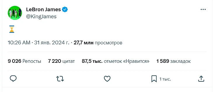 Все началось 31 января, после поражения в матче против «Атланты». Джеймс опубликовал в соцсетях изображение песочных часов.
