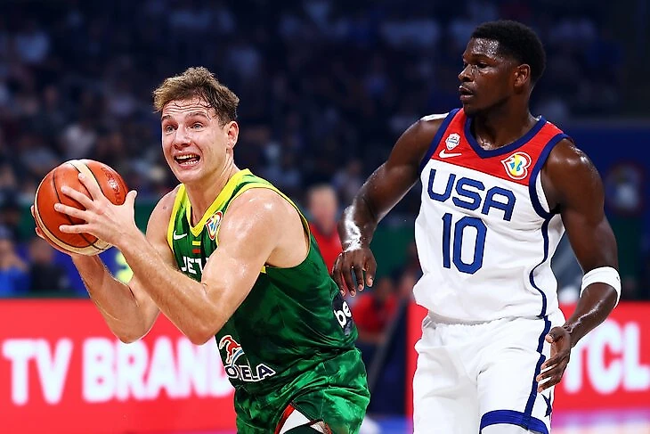 Люди новые, схема та же. Керр, начитавшись конспектов Поповича, повез на чемпионат мира пассажиров, до того не имевших международного опыта выступлений за основную сборную. Попытка Керра выдрессировать котят на кошках была мгновенно пресечена литовцами во втором групповом раунде. 12:31 в первой четверти, и американцы обрекли себя на ловлю упущенного времени и моментов. Энтони Эдвардс старался закрепить за собой статус главной звезды команды (35 очков), но литовцы не только кучно клали трехочковые, но и находили время, чтобы показывать языки соперникам (звездный час Видаса Кариняускаса).
