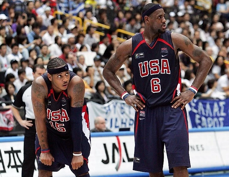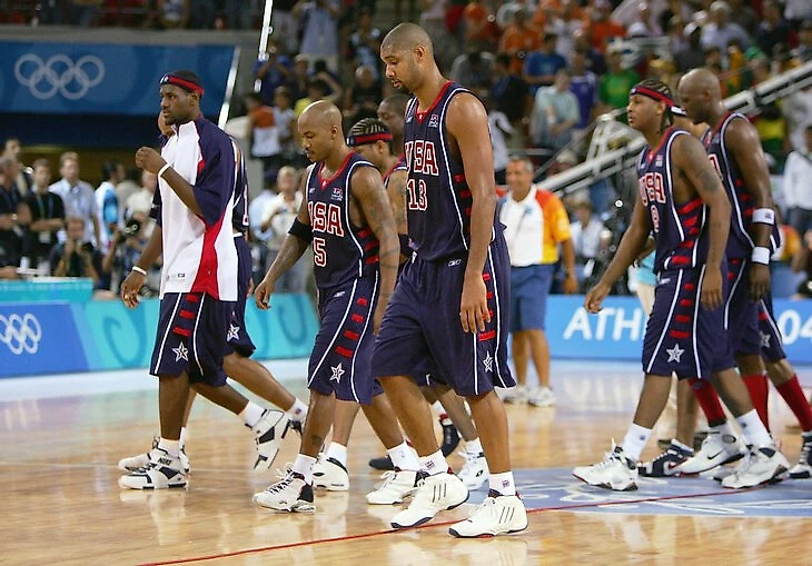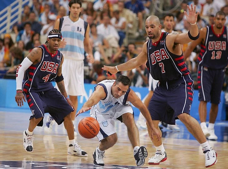 Судя по тому, как играла сборная США в начале 00-х, не покидает ощущение, что она попала в какой-то временной парадокс. В Индианаполисе сборная полагалась пусть и не на самых-самых, но все же звезд НБА, а к 2004-му, глядя новое поколение, доверило команду еще не оперившимся Леброну, Мело и Уэйду. В качестве наставников для них Лэрри Браун избрал абсолютно несопоставимый контингент. Тим Данкан никогда не был вдохновителем, а предпочитал молча подавать пример упорной и тихой игрой на команду. Айверсон наоборот – образец кумира молодежи (какая молодежь, такие и кумиры), но играл в зависимости от настроения.