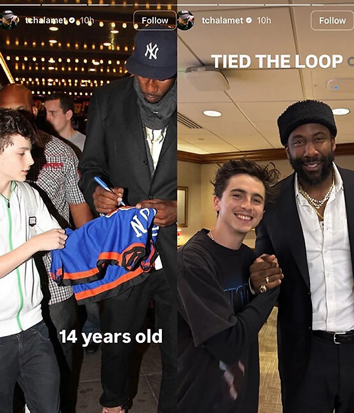 Сезон-2009/2010 «никербокеры» закончили с балансом 29-53, поэтому, даже несмотря на пятую посещаемость в лиге, «Никс» развернули активность по привлечению болельщиков на трибуны. 14-летний Шаламе тогда учился в средней школе Ла Гуардиа на Манхэттене. Ему еще не разрешалось покупать спиртное, не говоря о том, чтобы подавать серьезные надежды в актерском плане. Тимоти мелькал в сериалах типа «Закон и Порядок», но до первого заметного эпизода в его карьере (роли в шпионской саге «Родина» на канале Showtime) оставалось еще два года.