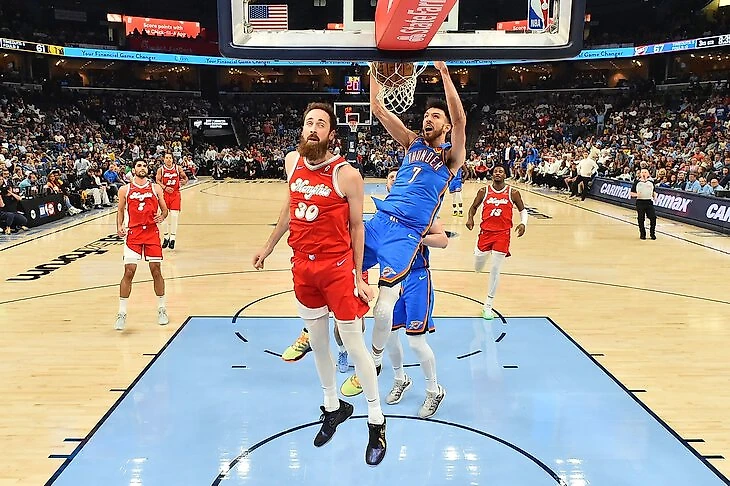 «Тандер» сперва отдали полцарства и пару деревенских наделов за Шэя Гилджес-Александера, что на тот момент выглядело как сделка с прицелом на очень неопределенное будущее. А в прошлом сезоне обменяли вечно талантливого Джоша Гидди на постоянно лысого Алекса Карузо.