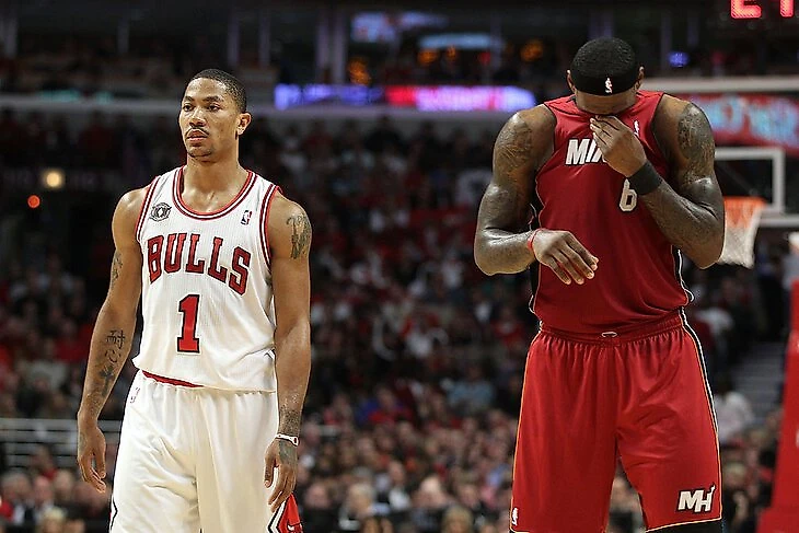 При том, что Деррик превосходил Леброна лишь в таких категориях, как среднее количество передач за игру (на 0,7 передачи), реализация дальних бросков (на 0,2%) и реализация штрафных бросков (на 9,9%).
