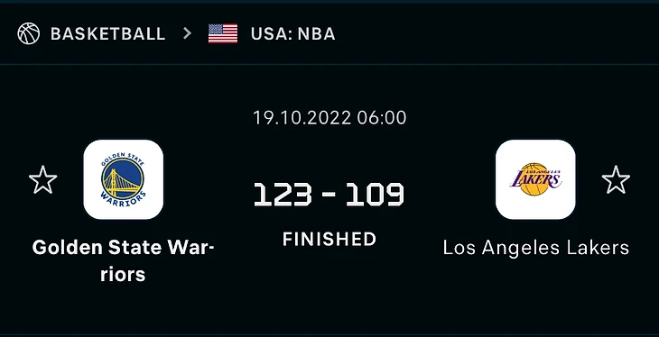 — «Лейкерс» были очень серьезно настроены на данный матч и мотивация выиграть просто зашкаливала. Все это было от обиды, завести и злости. Матч начался с вручения ГСВ золотых перстней за победу в плей-офф. И Леброн с таким лицом на это все смотрел, что зависть из него просто перла. Так же перед матчем Дэвис заявил, что «Лейкерс» хотят испортить праздник Голден Стейт и выиграть данный матч. Но интересно, они серьезно на что-то рассчитывали? Или это заявление было сделано ради шумихи и подогрева интереса. Я думаю, что второй вариант более правдоподобный. Что могут сделать Леброн и Дэвис, против команды, в основной пятерке которой почти каждый как один из лидеров «Лейкерс». Да и к тому же ГСВ - это команда, четко отработанный механизм, который работает как часы. У них есть все: и атака, и защита и попадания из-за дуги. А вот у Л-А даже в то время первых двух пунктов не было (атаки и защиты). Хотя Леброн и Дэвис что-то неплохое показывали. Матч закончился ожидаемо и предлагаю перейти к следующему.