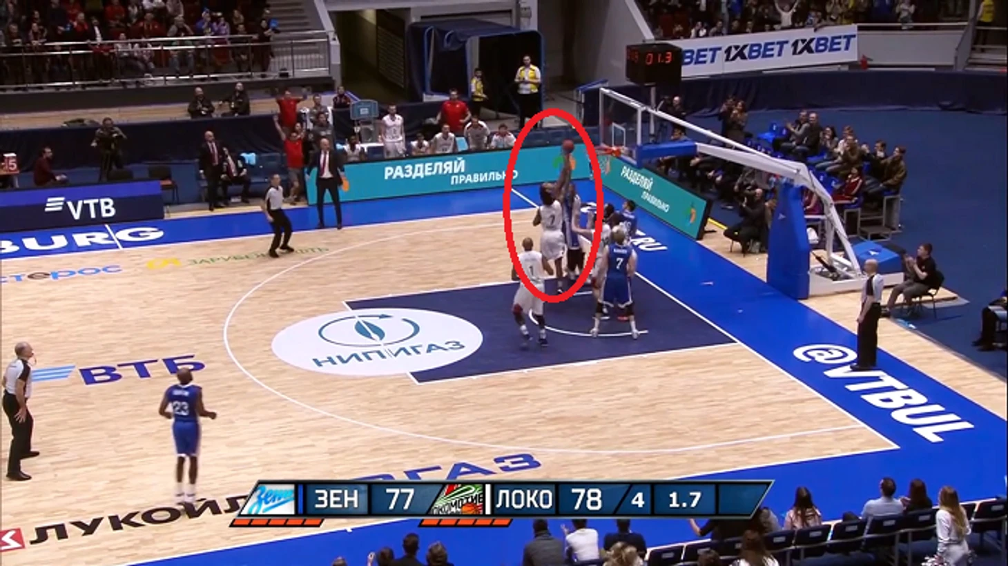 Решающий же момент матча случился за 7 секунд до финальной сирены. При минимальном отставании (77:78) хозяева владели мячом. На этот раз им не удалось провести внятную комбинацию, и атака бело-синих выглядела несколько сумбурной.
