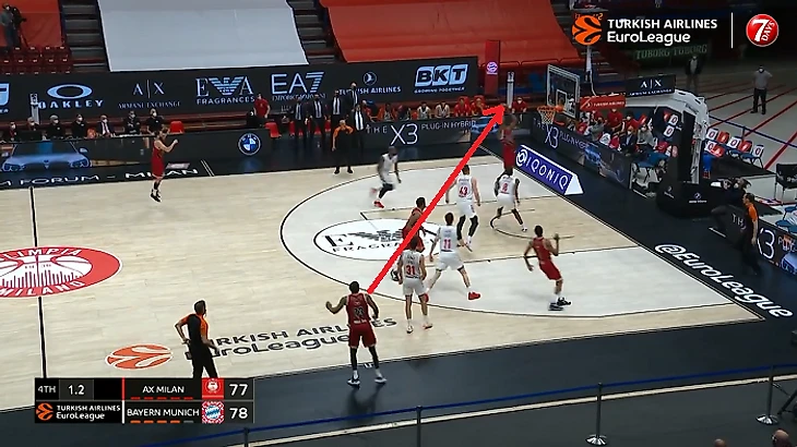 Если помните, эту же комбинацию Этторе Мессина использовал в матче против ЦСКА: тогда под кольцо прорвался Кайл Хайнс.