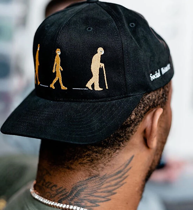 Линия создана, чтобы подчеркнуть важность соблюдения мер предосторожности. На футболках с длинным и коротким рукавом, спортивных шортах и бейсболках коллекции содержатся призывы соблюдать социальное дистанцирование во время пандемии.