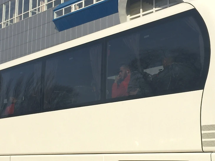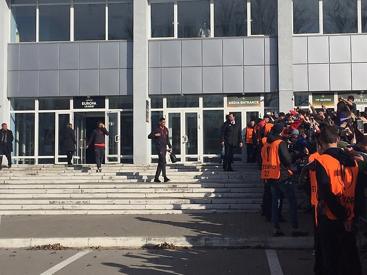 У клубного автобуса команду поджидала внушительная толпа болельщиков.