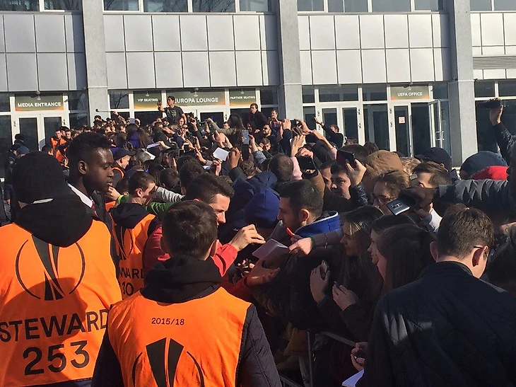 Дольше всех раздавали автографы и фотографировались с болельщиками Генрих Мхитарян и Андер Эррера. Толпа напирала так, как будто игроки раздавали не автографы, а новые айфоны.