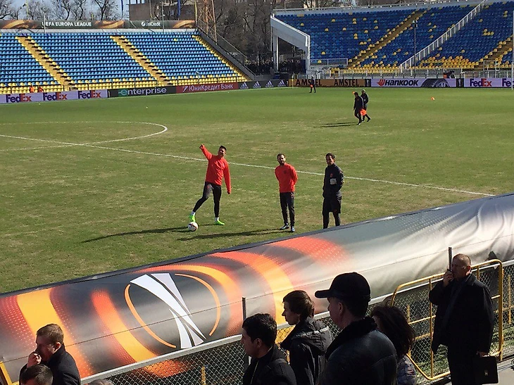 Очень буднично на стадион прибыли Дейли Блинд и Жозе Моуринью, как будто это Валерий Петраков привез Никиту Гвинейского рассказать о происхождении своей фамилии. Так как до пресс-конференции было еще полчаса, Моуринью отправился опробовать газон стадиона.