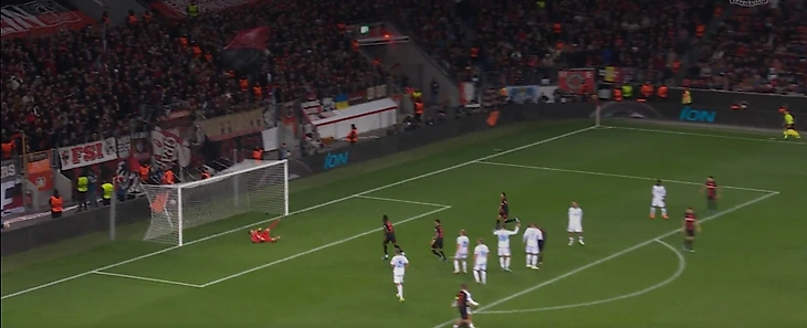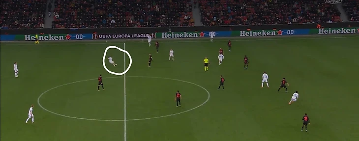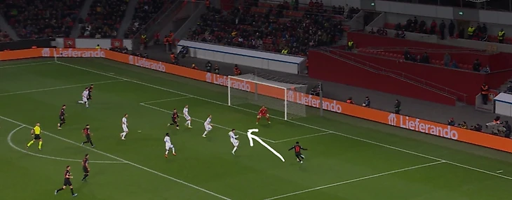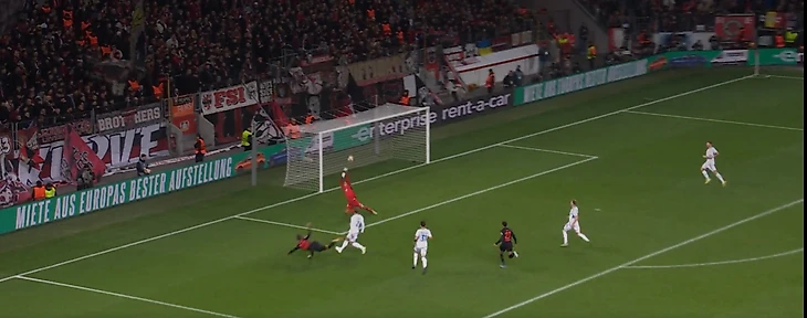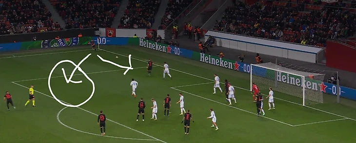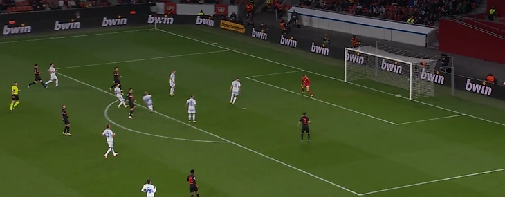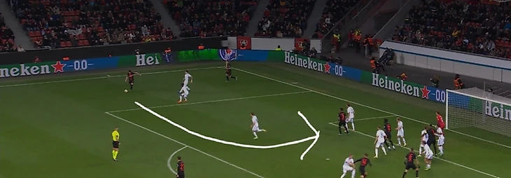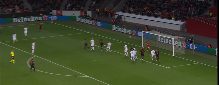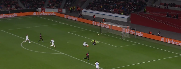 Чех искал своих товарищей по команде, но затем решил действовать в одиночку: развернулся, сместился в центр и точно пробил по воротам с 20 метров и вывел Байер вперед 1-0.