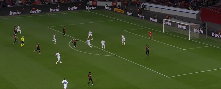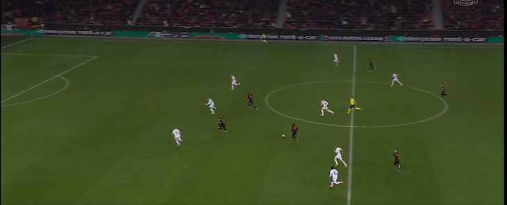 Хаби Алонсо также выбрал схему 5-3-2 с довольно внушительной оборонительной линией. Схема переходила в 3-4-2-1 за счёт смещения крайних защитников в полузащиту, а Шик находился дальше всех в атаке. Позицию правого защитника занял вингер - Телла, а центрального рядом с ним - Станишич. В основном состав был экспериментальный. Почему бы этого и не сделать? Ведь эта игра в общем ни на что не влияла. Байер и так обеспечил себе выход в плей-офф турнира.