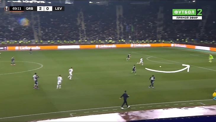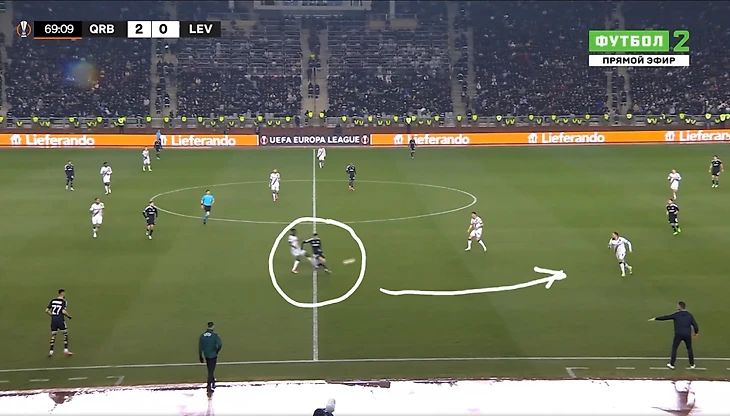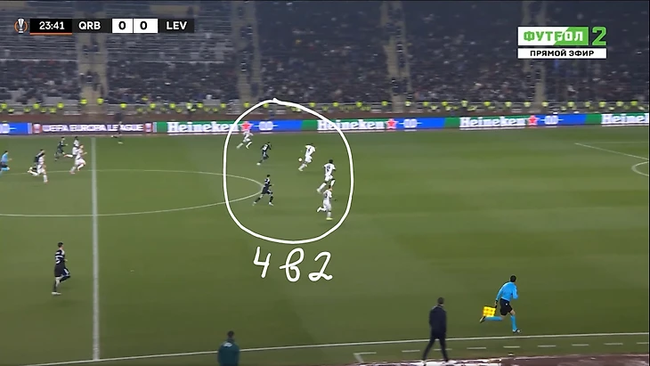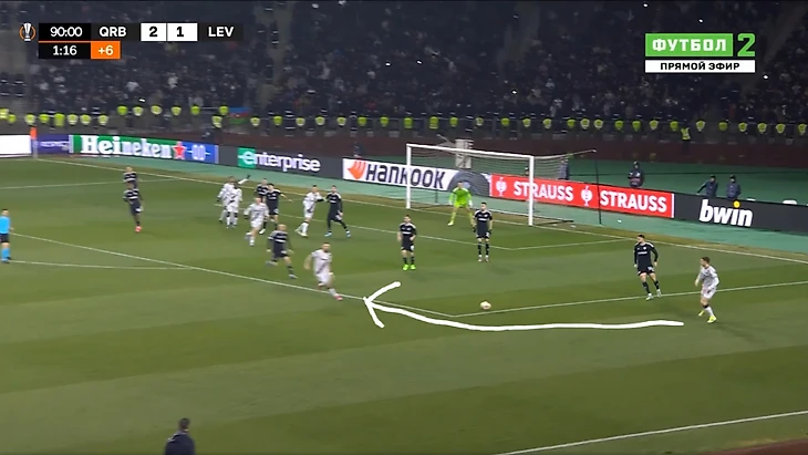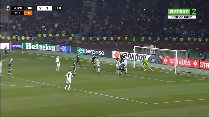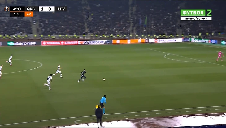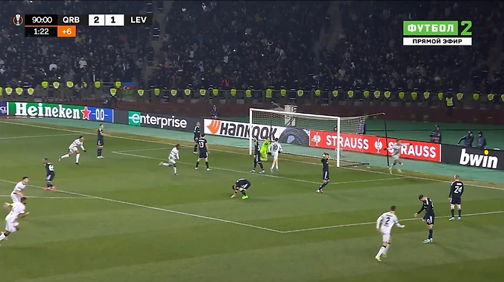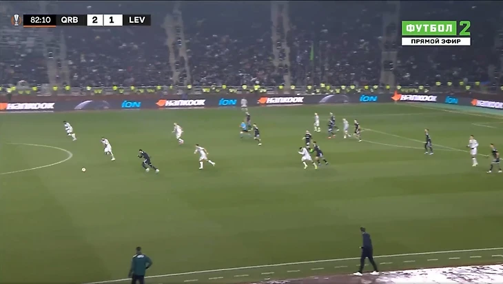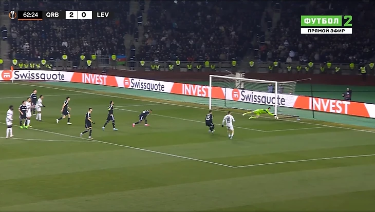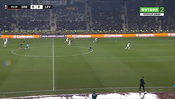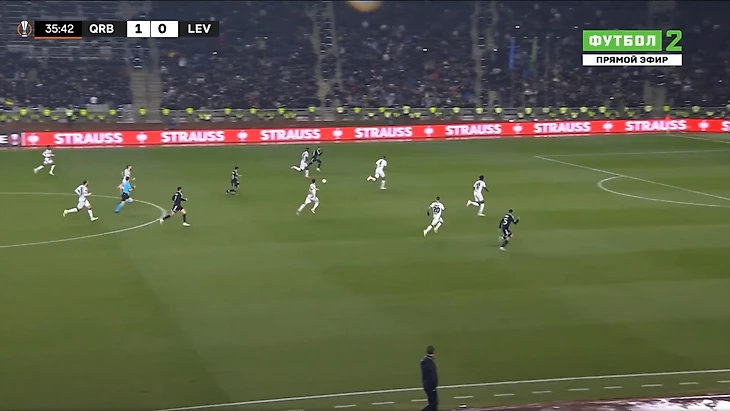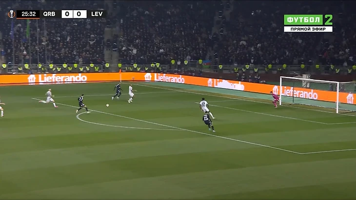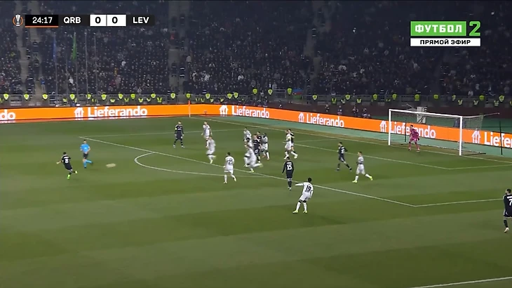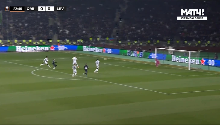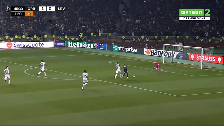 Это и была особенность первого тайма. «Байер 04» почти ничего не создал у ворот «Карабаха». А хозяева при каждой возможности (отбора мяча) убегали в контратаку. Каждый удар был чрезвычайно опасным для гостей из Германии.