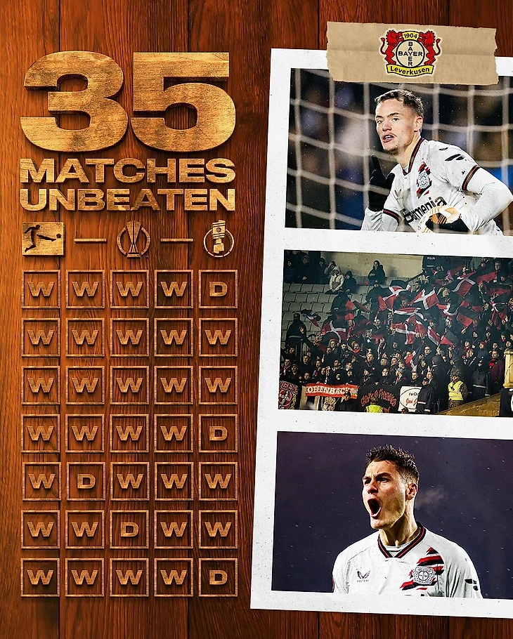 После голов хозяев Ясина Бензиа (26-я минута) и Жуниньо (45+2-я минута) в первом тайме Флориан Виртц (70-я минута) и Патрик Шик (90+2-я минута) установили окончательный счёт на табло. «Байер 04» из Леверкузена остаётся непобедимыми после 35 игр во всех соревнованиях.