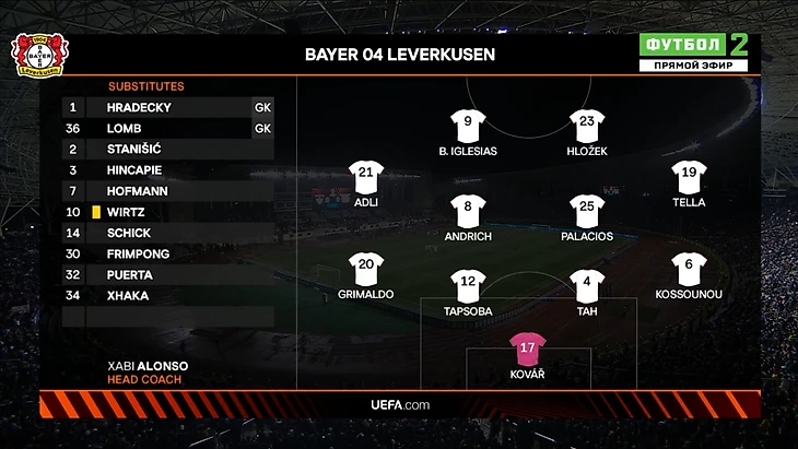 По сравнению с победой в дерби со счетом 2:0 над «Кельном» главный тренер Хаби Алонсо провел ротацию и сделал восемь изменений в составе. Только Джонатан Та, Роберт Андрих и Алехандро Гримальдо снова стартовали. Поэтому состав, по большей части, можно назвать полуосновой. Из приятного можно отметить, что Эксекиэль Паласиос вернулся в стартовый состав после восстановления от мышечной травмы. И полузащитник снова присутствовал с самого начала, демонстрируя свою обычную игру.