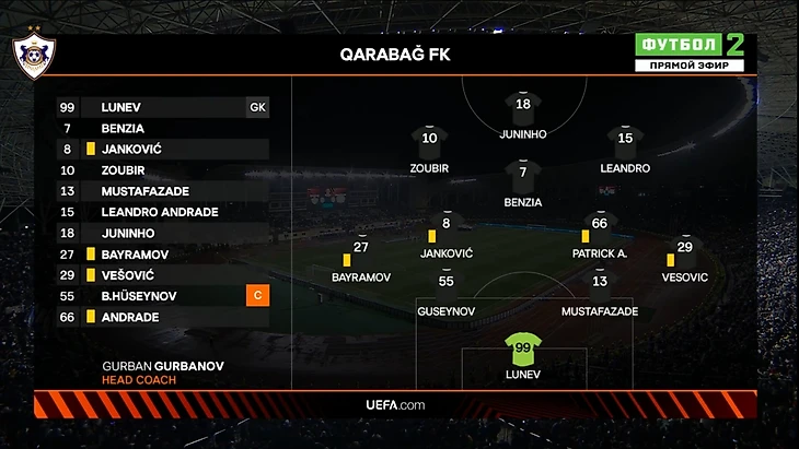 На 62-й минуте Тапсоба нанёс опасный удар с линии штрафной. Вратарь «Карабаха» сделал сэйв.