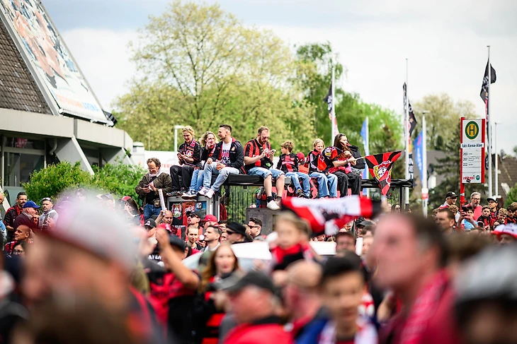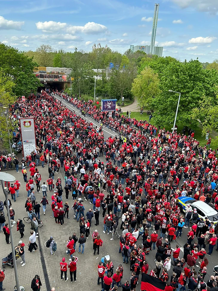 Днём в воскресенье весь Леверкузен был в предвкушении настоящего праздника. Жители активно украшали свои дома, вывешивая на окнах символику любимого клуба, выходили на улицу и рисовали на дорогах эмблемы, пели клубный гимн. Даже дорога, ведущая к «Бай-Арене» была переименована в проспект Хаби Алонсо! Леверкузен наконец-то нашёл своего героя!