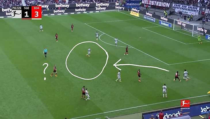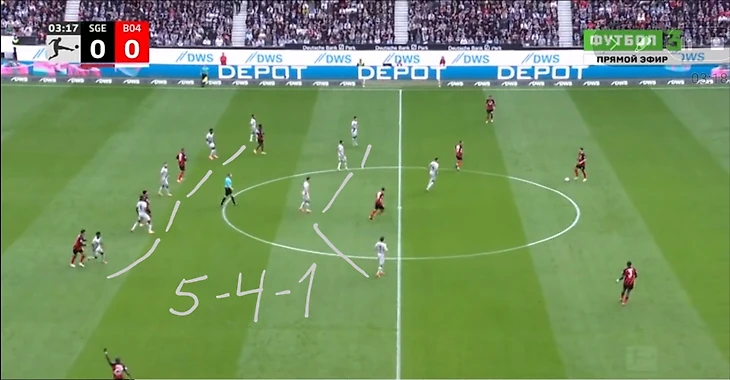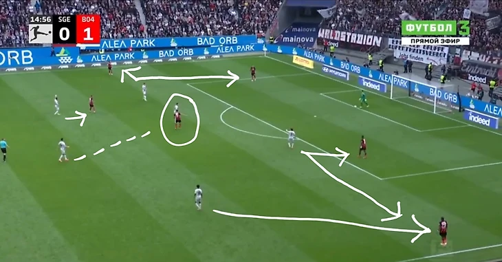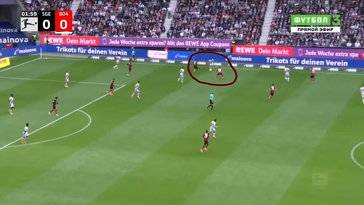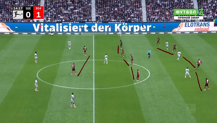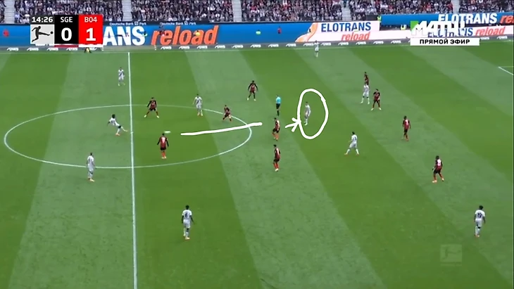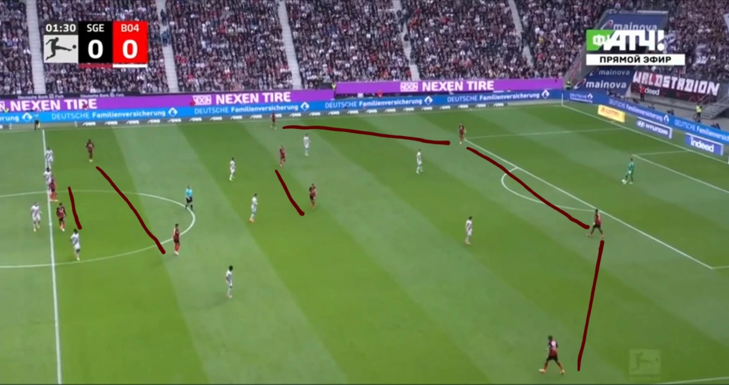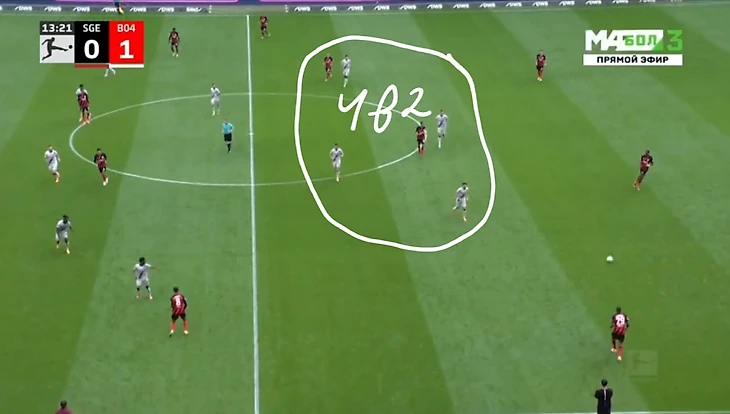 Проблема была в том, что нападение «Леверкузена», создавая численное преимущество, оседало в центре и блокировало «Айнтрахту» варианты передач в этой зоне.