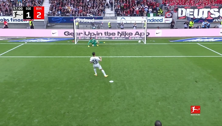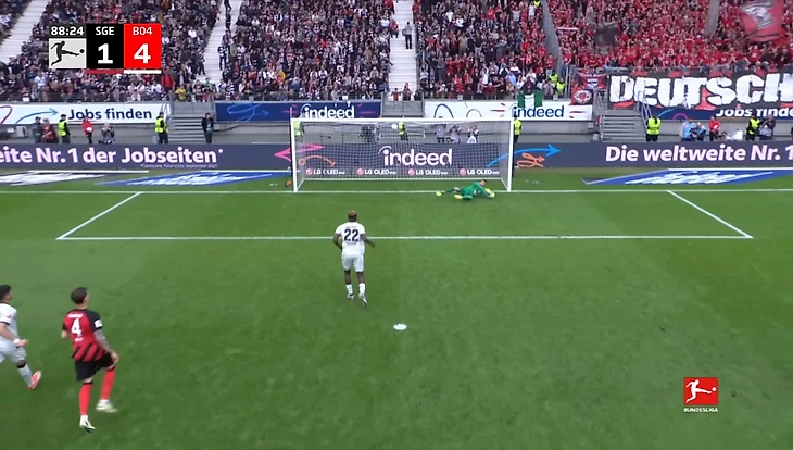 После перерыва франкфуртцы начали действовать чуть активнее. Спустя почти час хозяевам поля пришлось смириться с ещё одной неудачей: Нильс Нкунку повалил Теллу в штрафной после прострела, а затем судья Кристиан Дингерт указал на точку. Паласиос хладнокровно реализовал пенальти и сделал счёт 3:1.