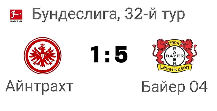 «Байер 04» уверенно обыграл «Айнтрахт» в 32-м туре Бундеслиги, набрав 84 очка. Беспроигрышная серия команды Хаби Алонсо продолжается. Она остаётся непобеждённой в 48-й официальной игре подряд во всех турнирах.