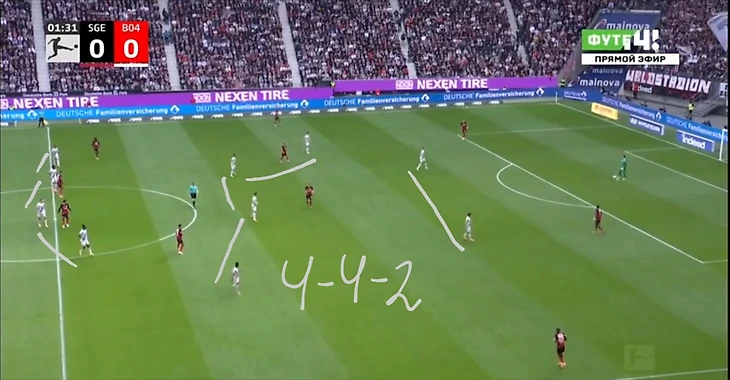В обороне «Айнтрахт» перестраивался на 4-4-2.
