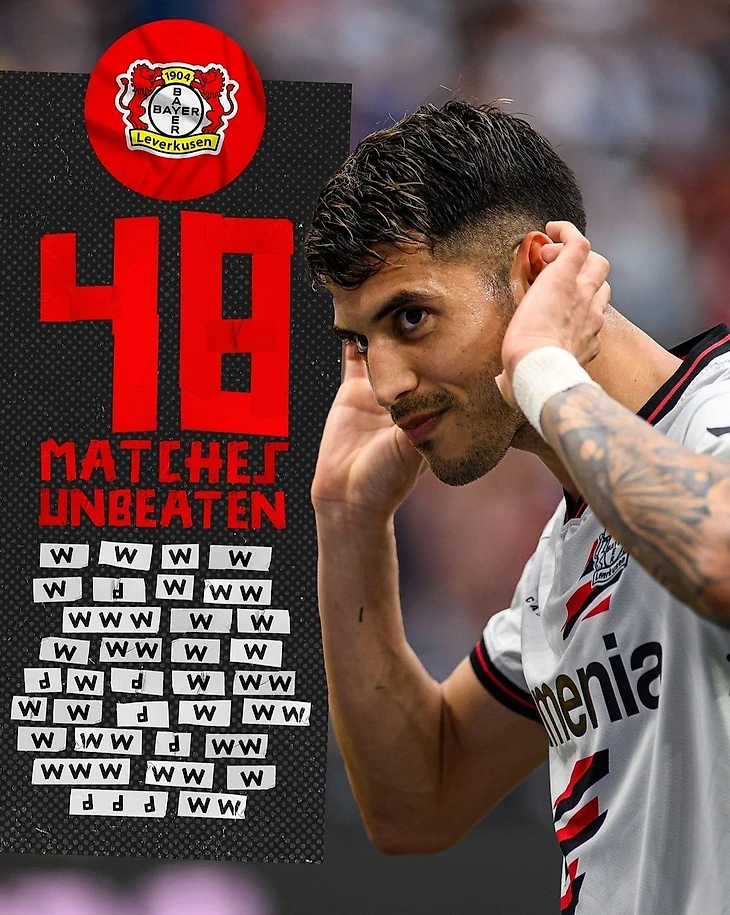 4) «Леверкузен» – первая команда в истории Бундеслиги, которая не проиграла первые 32 матча сезона.