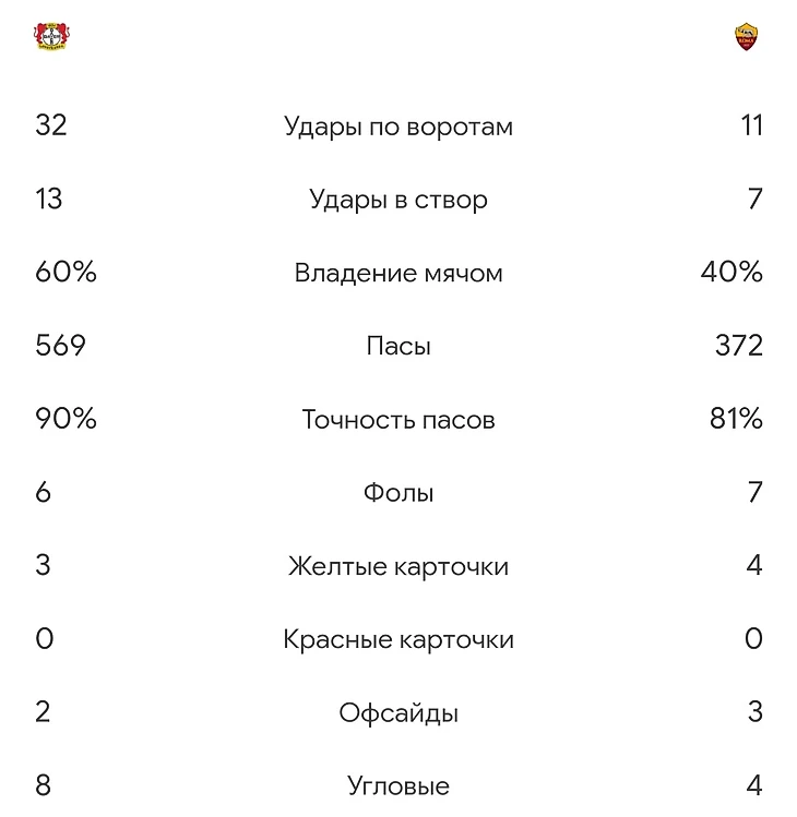 Перспективные комбинационные атаки и стандарты тоже были. В первом тайме «Байер» наиграл на более высокий xG, чем «Рома» (1,50 против 1,14). Хотя команда Даниэля де Росси не очень сильно отстала. Просто дело в том, насколько опасными были эти атаки.
