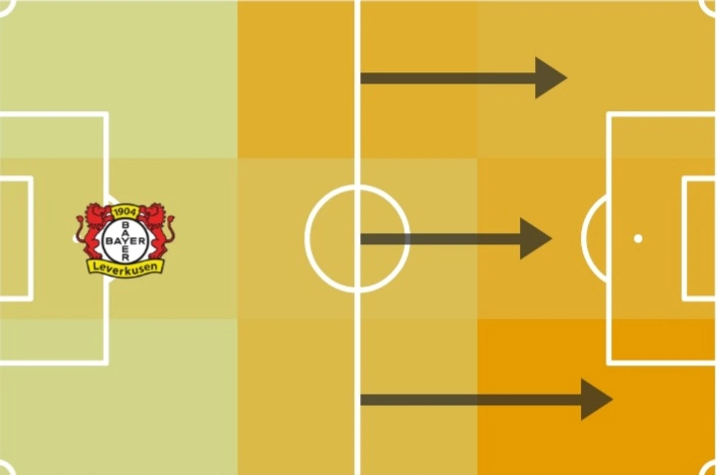 Ещё одной отличительной особенностью «Байера» является способность быстро, и главное, эффективно переходить из защиты в атаку. В эти переходные моменты команда Хаби Алонсо трансформируется из защитных 5-2-3 к атакующей 3-4-2-1.