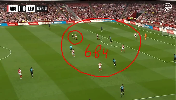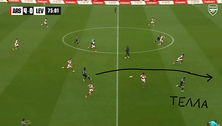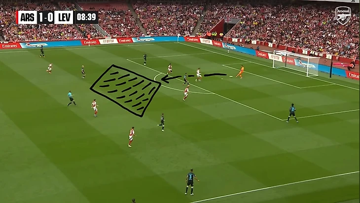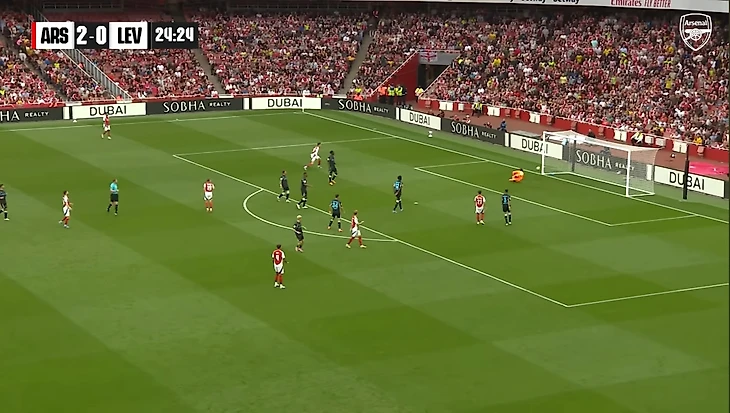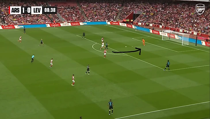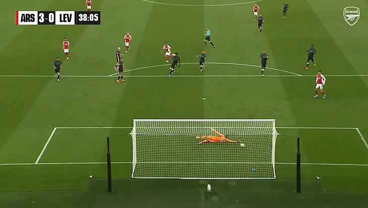 Второй гол стал результатом прессинга «канониров» и последуюшей ошибки вратаря «Байера 04». «Арсенал», как правило, старается перекрыть центр поля, чтобы затруднить продвижение соперника и заставляя его переводить мяч на фланг. А команда Хаби Алонсо стремится играть через центр.