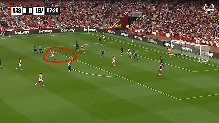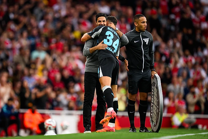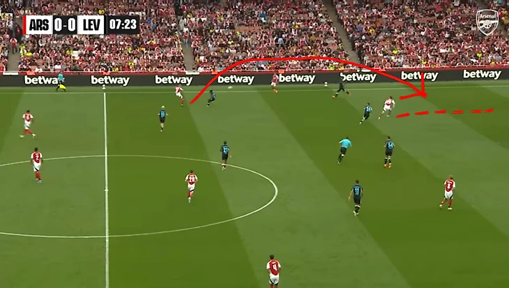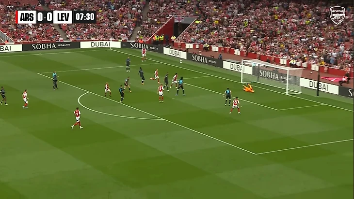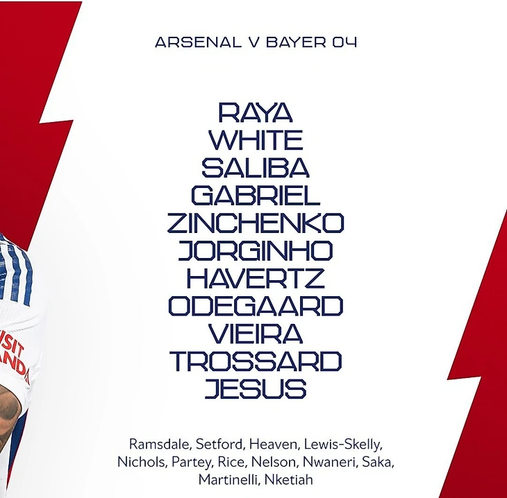 Микель Артета выставил практически основной состав на товарищеский матч с «Байером» по схеме 4-3-3. Давид Райя занял место в воротах. Бен Уайт, Вильям Салиба, Габриэль Магальяйнс и Александр Зинченко составили четвёрку защитников. В полузащите стартовали Мартин Эдегор, Жоржиньо и Кай Хаверц. В нападении вышли Фабиу Вийера, Габриэл Жезус и Леандро Троссард.