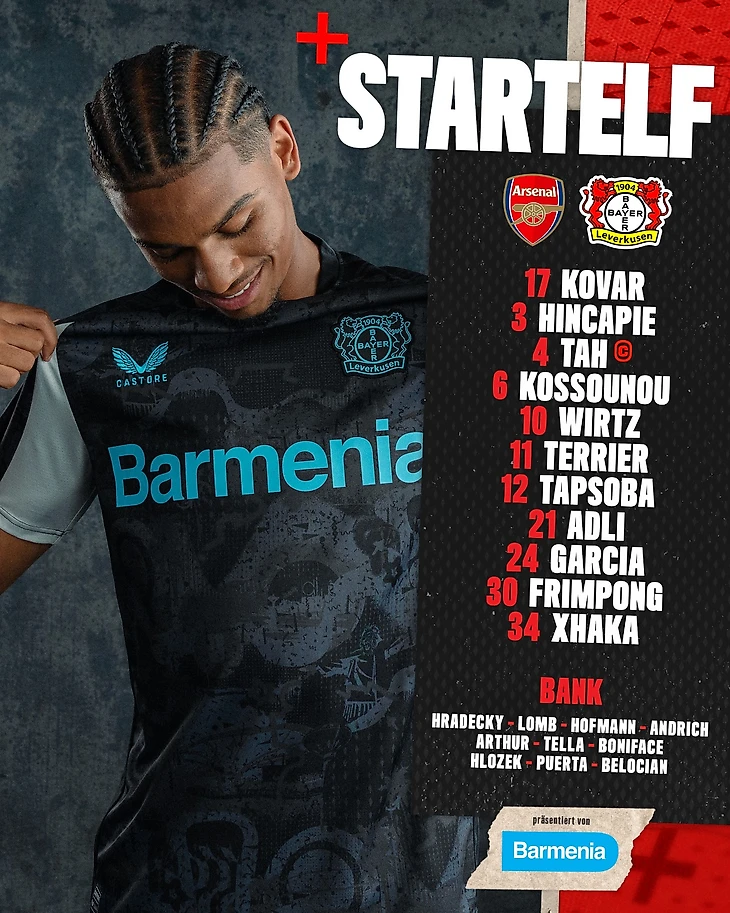 Хаби Алонсо изменил четыре позиции в старте по сравнению с ничьёй против «Ланса». Джонатан Та, Джереми Фримпонг, Пьеро Инкапье и Флориан Виртц заменили Роберта Андриха, Натана Теллу, Жанюэля Белосьяна и Виктора Бонифаса, которые остались в запасе. Патрик Шик и Алехандро Гримальдо не полетели вместе с командой в Лондон.