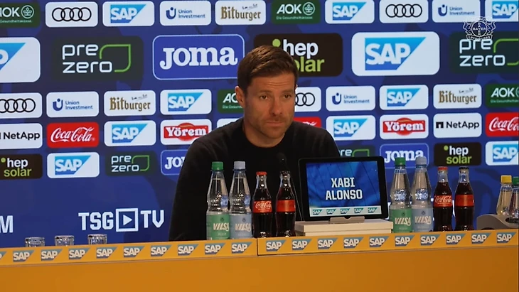 «Добрый вечер! Я приветствую вас на пресс-конференции после матча «Хоффенхайм» - «Байер». Также моё почтение тренерам. Хаби Алонсо, первое слово передаю вам как гостю. Поделитесь, пожалуйста, вашими впечатлениями от игры».
