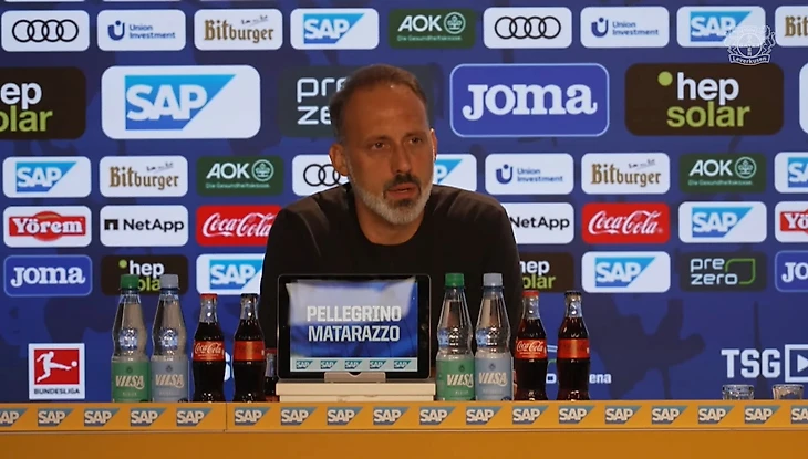«Здравствуйте! Пеллегрино Матараццо, вы радовались голу Мергима Бериши и другим позитивным моментам. Есть ли что-то, что вы вынесете из игры с «Байером» для матча с «Унионом Берлином» на следующей неделе?».